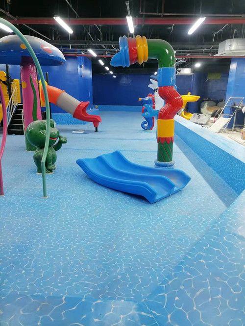 4、然后收起泳池膠膜,使用搭配好的水性專用粘性膠水進(jìn)行地面均勻刮涂;