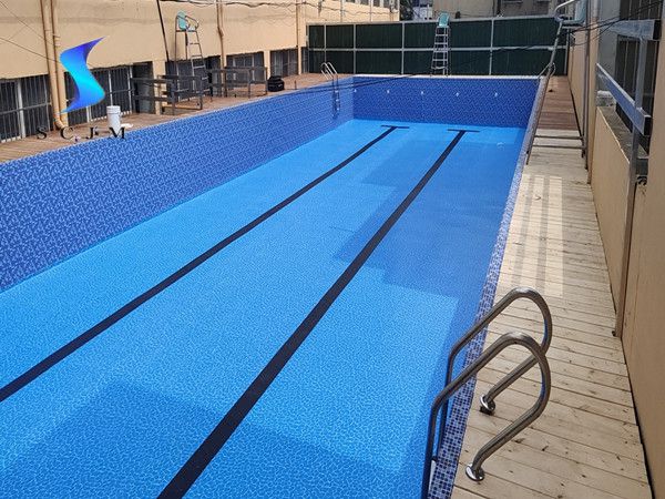 大家都知道,鋼板拼裝式游泳池大部分以兒童類型池子為主,所以有的部分使用者為了保護兒童的安全,再池子底部或者立面鋪裝一層pvc泡沫墊,用來防止孩子磕碰被傷害,那種這種類型的游泳池,安裝游泳池防水膠膜的時候,就需要干鋪工藝安裝。采用這樣的鋪裝方式,就需要我們做好提前的準備,水口需要采用專用的配套水口,然后游泳池四周需要采用鋼板或者扣條卡槽固定游泳池防水膠膜。其他的鋪裝就按正常流程操作即可,接縫搭邊5cm熱熔焊接,陰角以及拐角做好美觀處理。